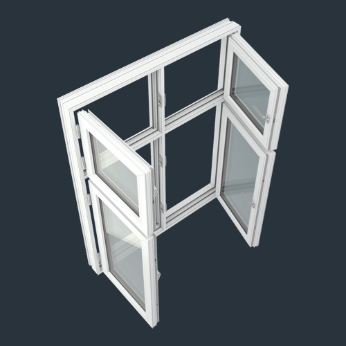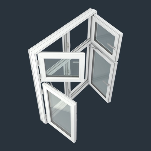 með föstum ramma í miðjunni og 2x2 gleri að ofan (PVC-DB3-22-11)
