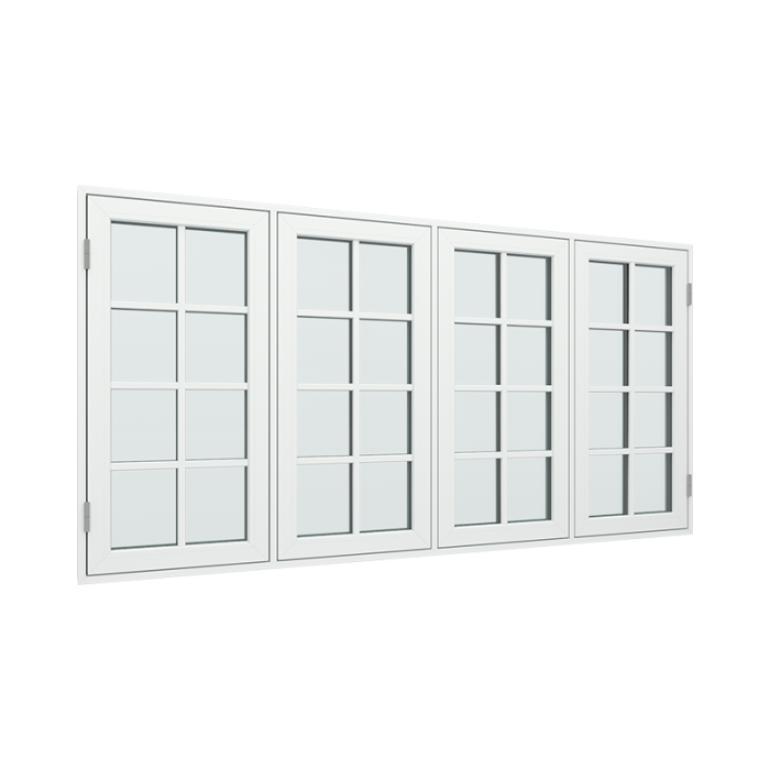 með 2x4 gleri, föstum ramma og miðjubita (PVC-P4-24)