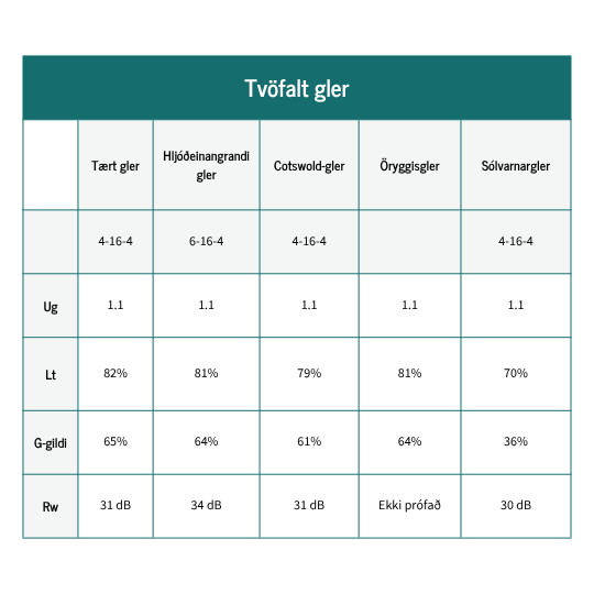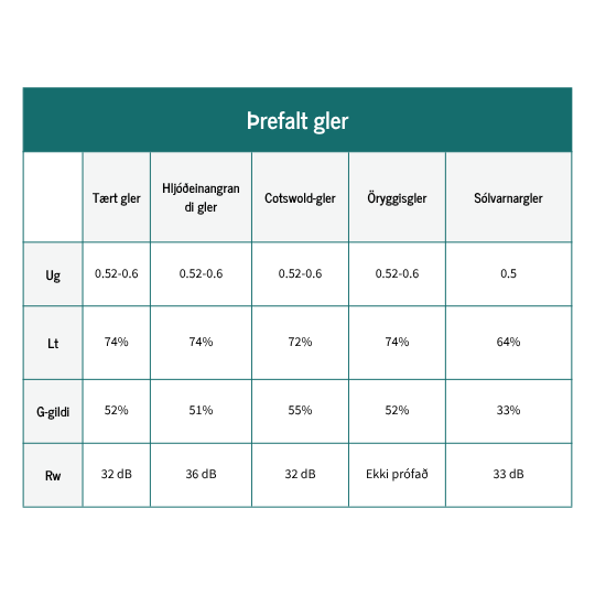 Lág tala merkir að rúðan býr yfir góðri einangrun gegn varmatapi.