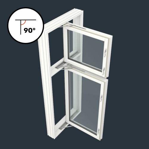 Svona virkar öryggisfestingin: 1. Glugginn opnast þar til öryggisarmurinn tengist og þar með festir opna stöðu gluggans. 2. Til at loka glugganum, þarf að draga gluggann ca. 2 cm inn, þá losnar öryggisfestingin. 3.Til að opna gluggann alla leið, taktu þá öryggisarminn af króknum. 4. Þegar glugganum er lokað, mun öryggisarmurinn sjálfkrafa tengjast næst þegar glugginn opnast.