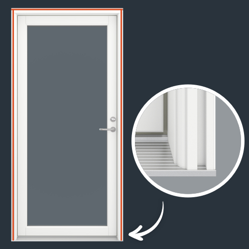Athugið: Ef þú valdir álþröskuld fyrir hurðina sem á að setja upp með hliðarþilinu er mikilvægt að velja einnig álþröskuld fyrir hliðarþilið til að grunnstykki beggja eininga flútti.