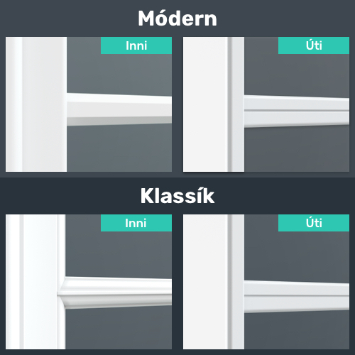Hér getur þú valið billista í glerið. ‘Án billista’, þá getur þú horft á milli innri og ytri lista, í gegnum bilið í glerinu. ‘Með billista’, þá getur þú EKKI horft á milli innri og ytri lista á gleri. Orkusparandi listar á gleri líta þannig út fyrir að vera þverskerandi