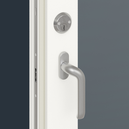 Lás/hurðarhúnn:Þriggja punkta ASSA-lás með sérlega sterkbyggðum krækjulæsingabolta.