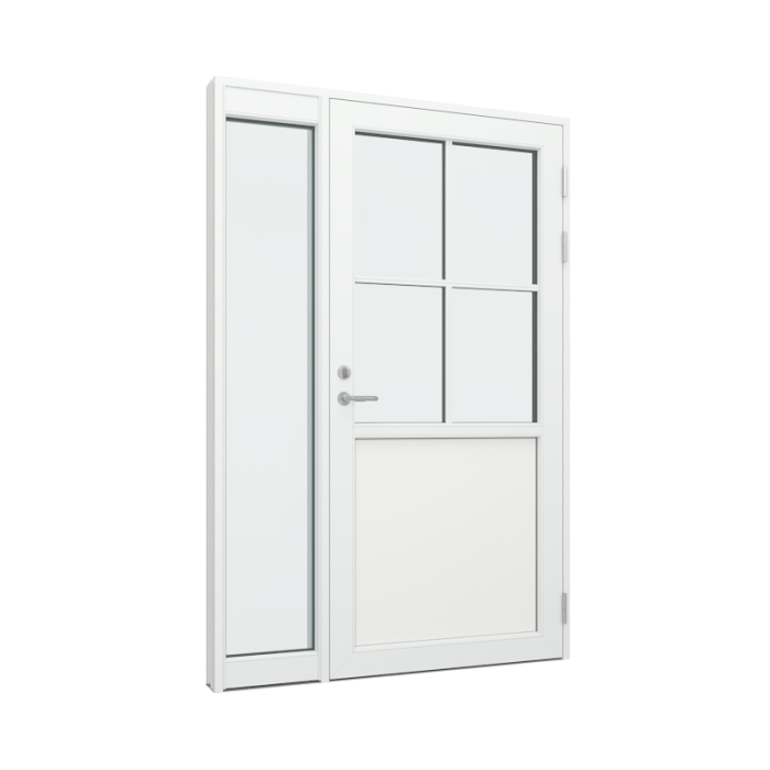 hurð með 1 fyllingu og 2x2 gleri og hliðarþil með 1 gleri (TRAL-DP-22-11-1F-11)