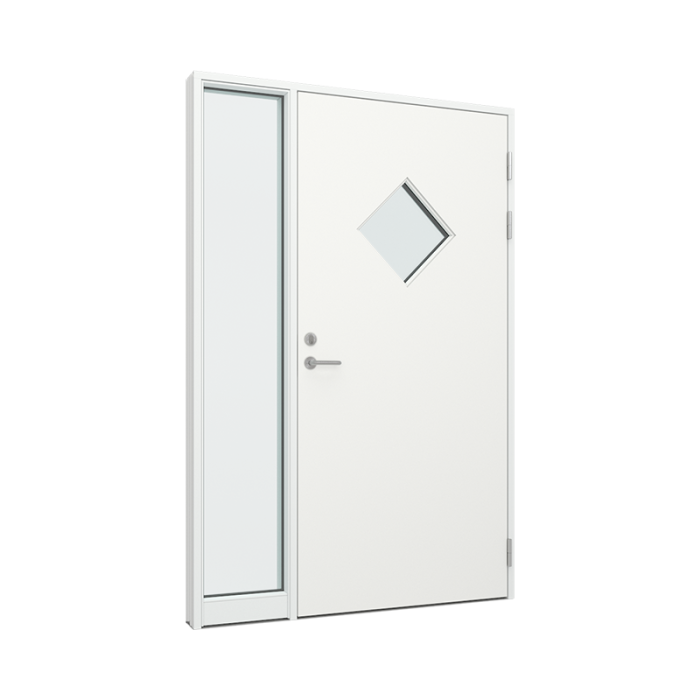 hurð slétt með skáhöllum ferhyrndum glugga og hliðarþili með 1 gleri (TRAL-DP-004-11)