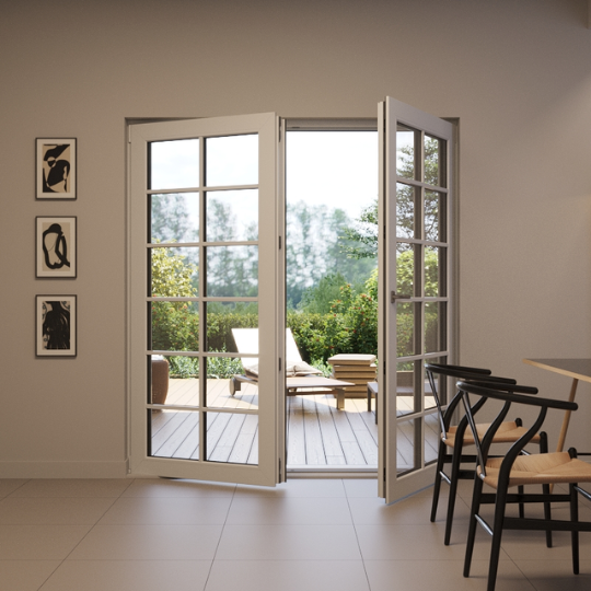 Tvöfaldar svalahurðir er mjög góður kostur ef fólk vill fá góða birtu og gott útsýni. Þessi gerð er líka ákjósanleg ef óskað er eftir góðu aðgengi inn og út úr húsinu.